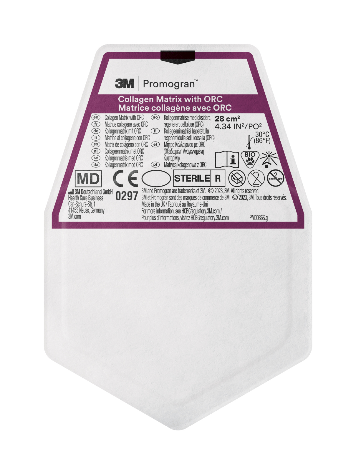 3M™ Promogran™ bestaat uit een combinatie van 45% geoxideerde geregenereerde cellulose (ORC) en 55% collageen en creëert een balans in de wond, waardoor deze in staat is te genezen. Door deze balans wordt de vorming van granulatieweefsel (nieuw weefsel), de epithelialisatie (vorming van nieuwe huid) en daarmee een snelle wondgenezing gestimuleerd.